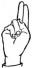 На ћирилици написано САВЕТА МИЛИЋ састоји се из 11 слова [?]. Исписано ћириличном једноручном азбуком за глувонеме: